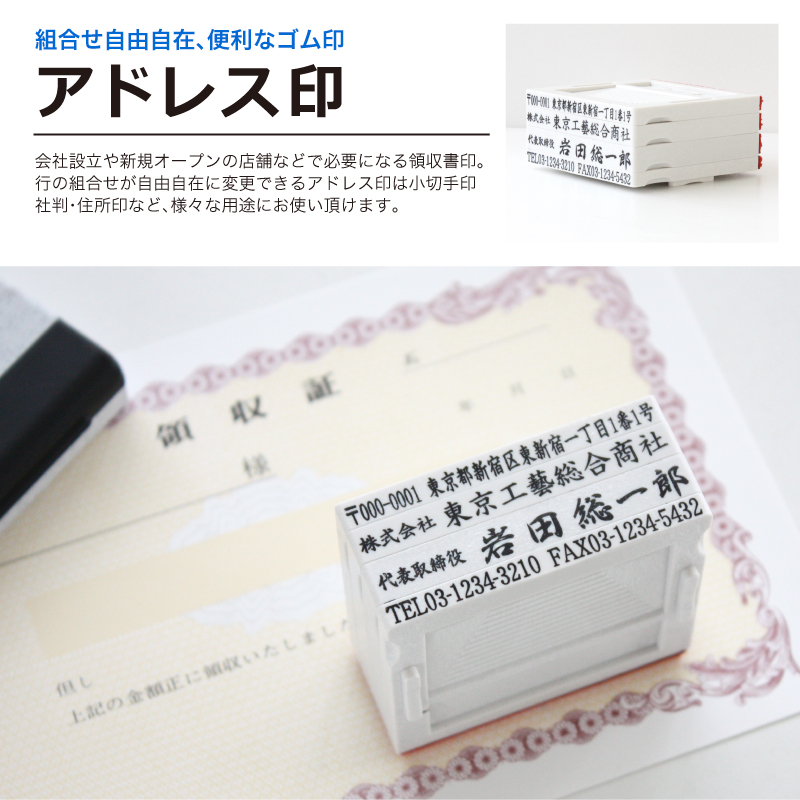 組合せ型アドレス印 領収書小切手用 氏名入り 住所1行タイプ