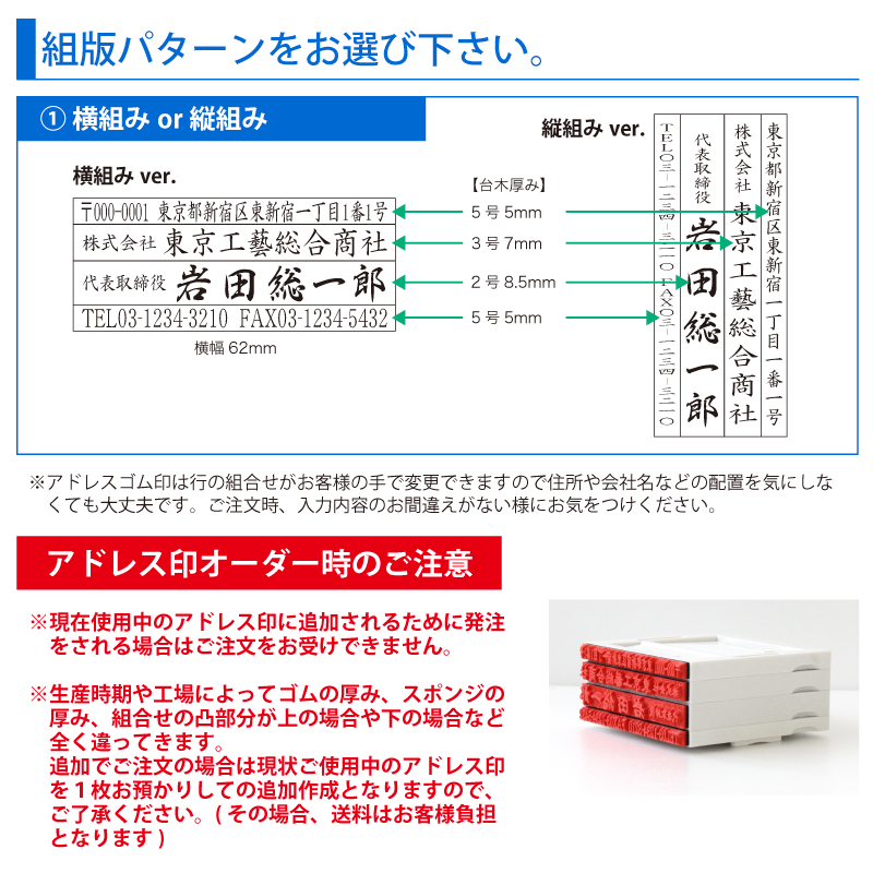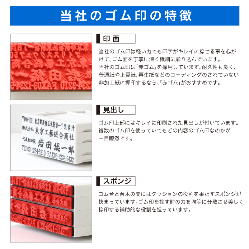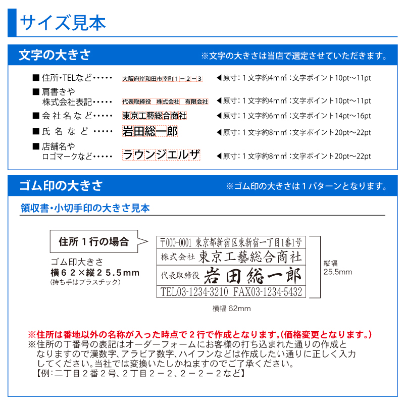 領収書用や小切手用、封筒などのリターンアドレスに捺せる使い勝手が良いゴム印です。