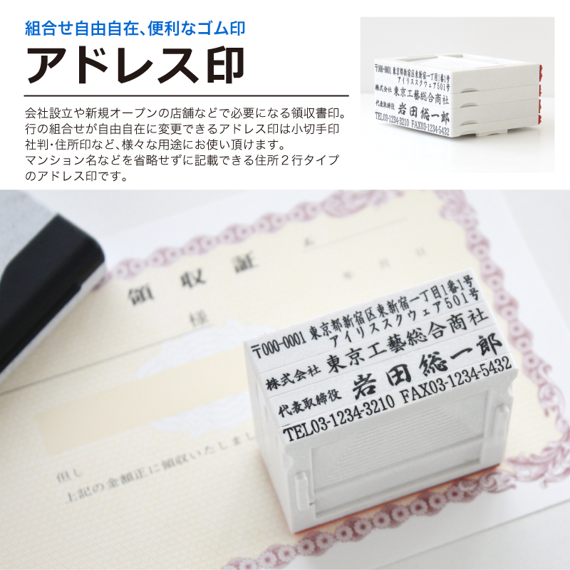 組合せ型アドレス印 領収書小切手用 氏名入り 住所2行タイプ